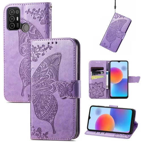 Funda para ZTE Blade A52 Butterfly Love Flower Estuche de Cuero En Relieve (Lavanda)