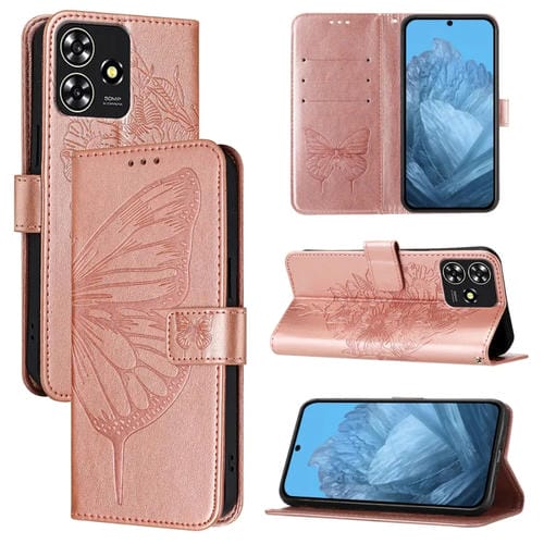 Funda de Cuero para ZTE Blade A73 4G con Mariposa en Relieve (Oro Rosa)