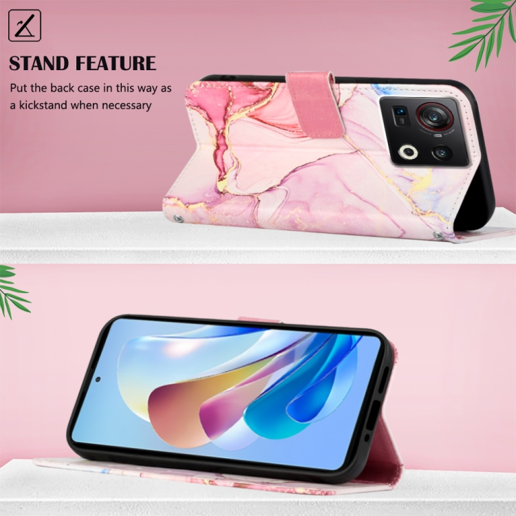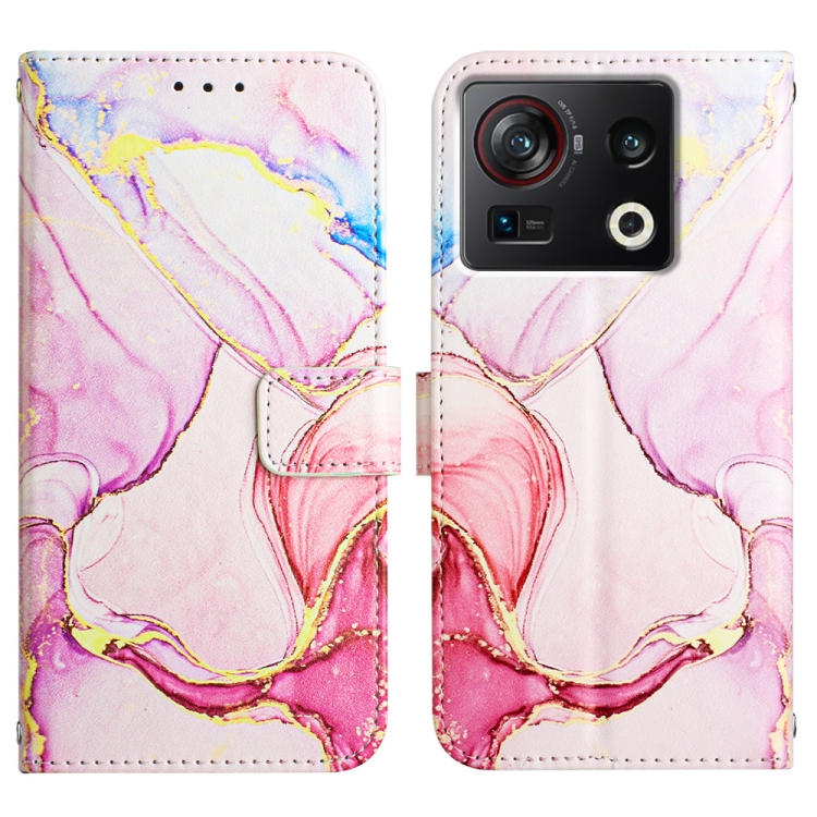 Estuche de Cuero para ZTE Nubia Z40S Pro Pt003 con Tapa de Patrón Mármol (Oro Rosa)
