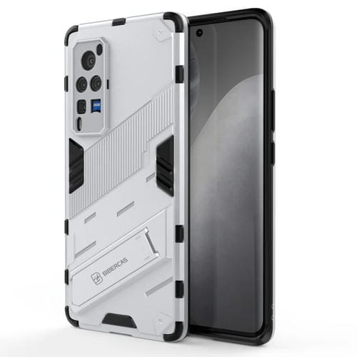 Punk Armor 2 En 1 PC + TPU Funda a Prueba de Golpes con Titular Invisible para Vivo X60 Pro (Plata)