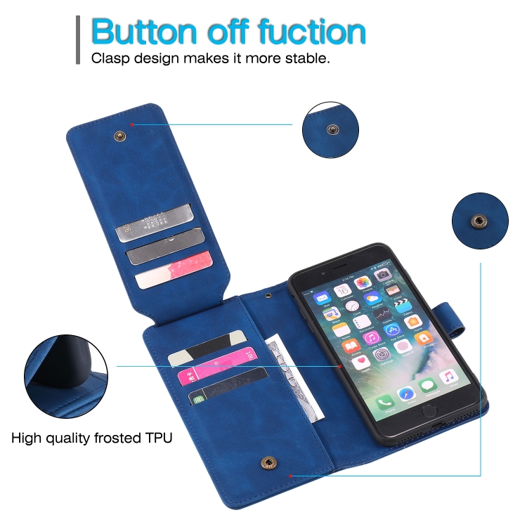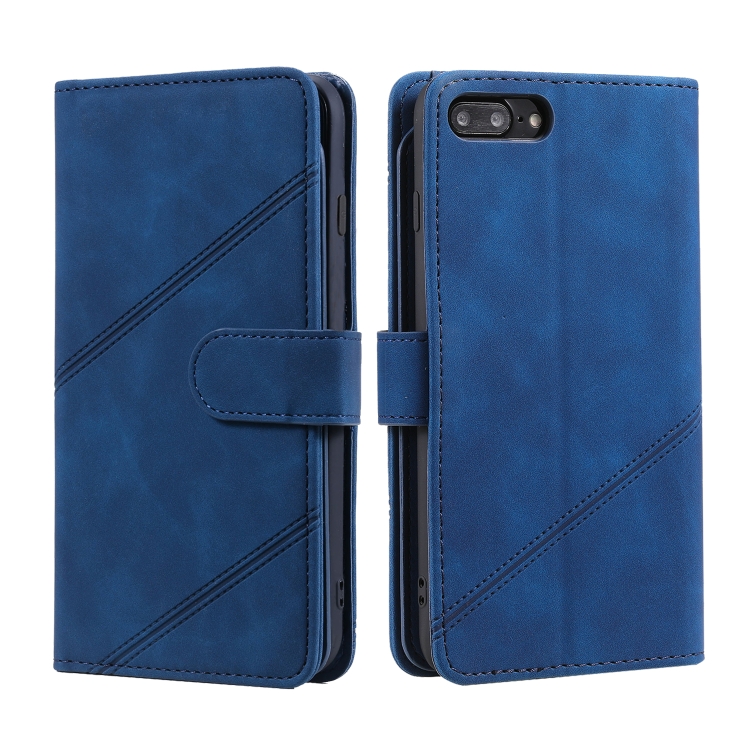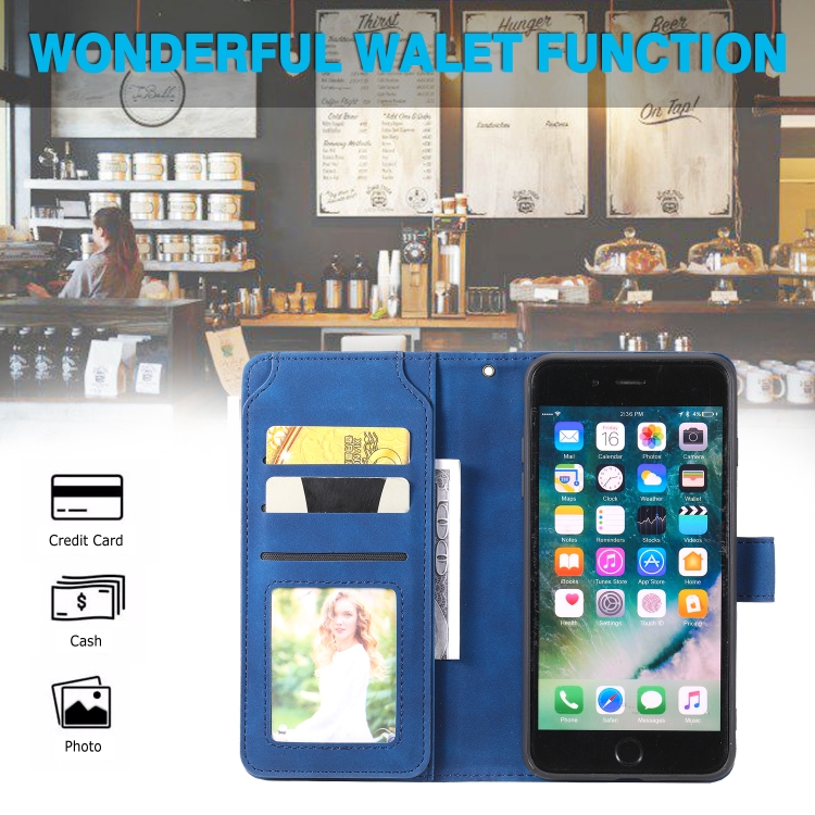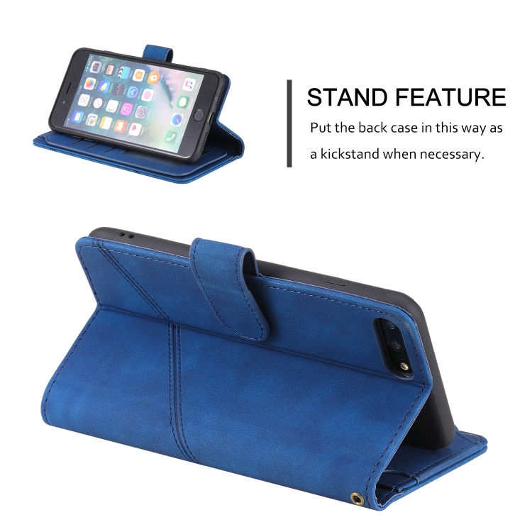 Funda de Cuero Horizontal Flip PU Siente la Piel para iPhone 8 Plus / 7 Plus con Soporte y Tragamonedas de Tarjetas (Azul)