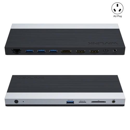 Estación de Acoplamiento Wavlink Umd05 con Puerto de Pantalla, HDMI, RJ45 Ethernet y Triple Pantalla MST para Computadora Portátil (Enchufe Au)